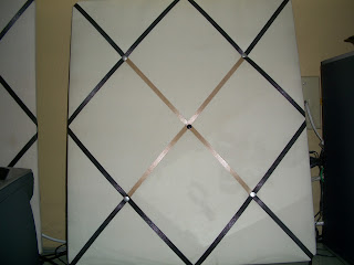 This is what I used: Black sharpie, plastic to keep the pen from bleeding through, thumb tacks, & a silver pen, all of these I had on hand so they still just cost me $.97 each!